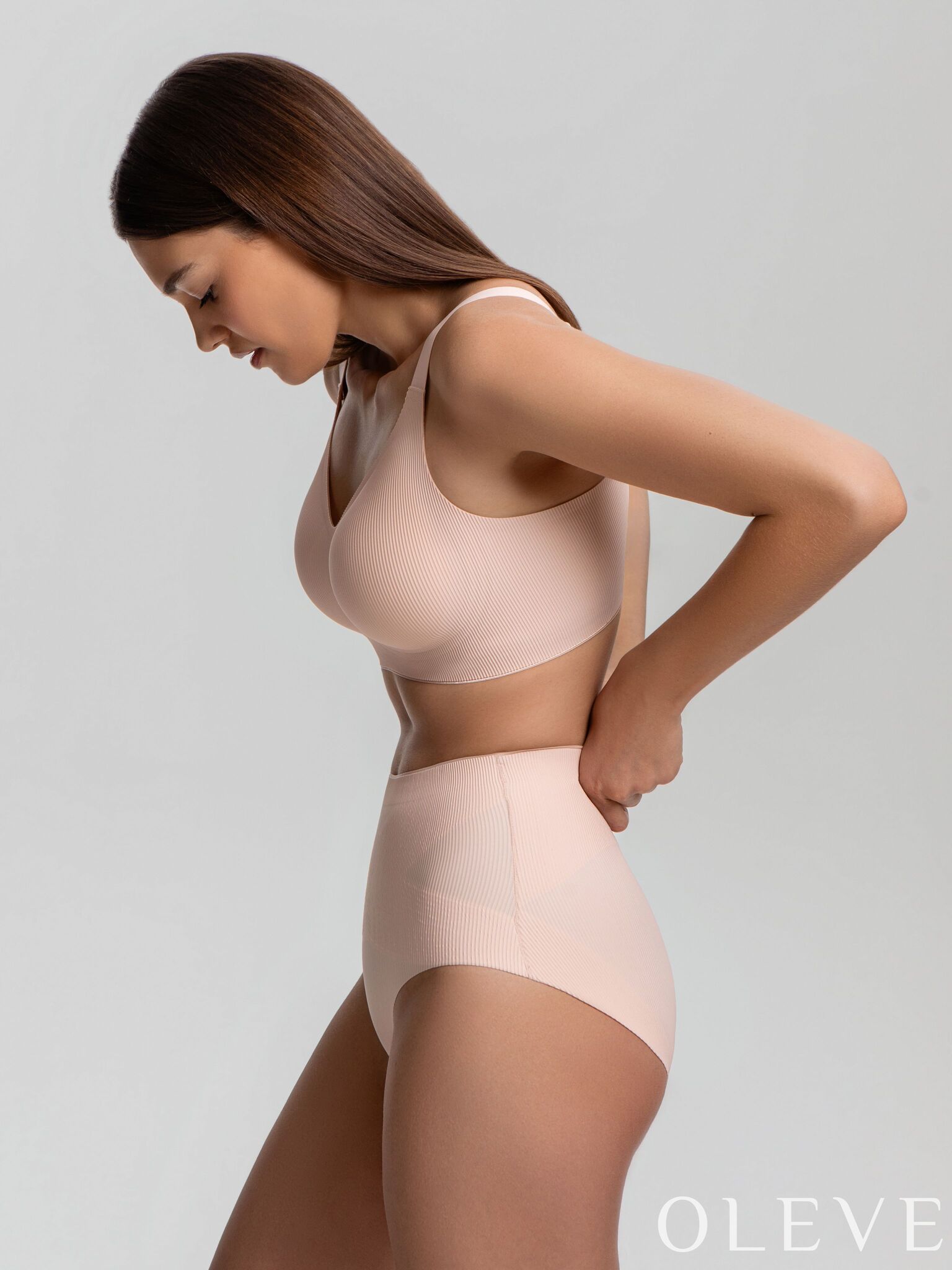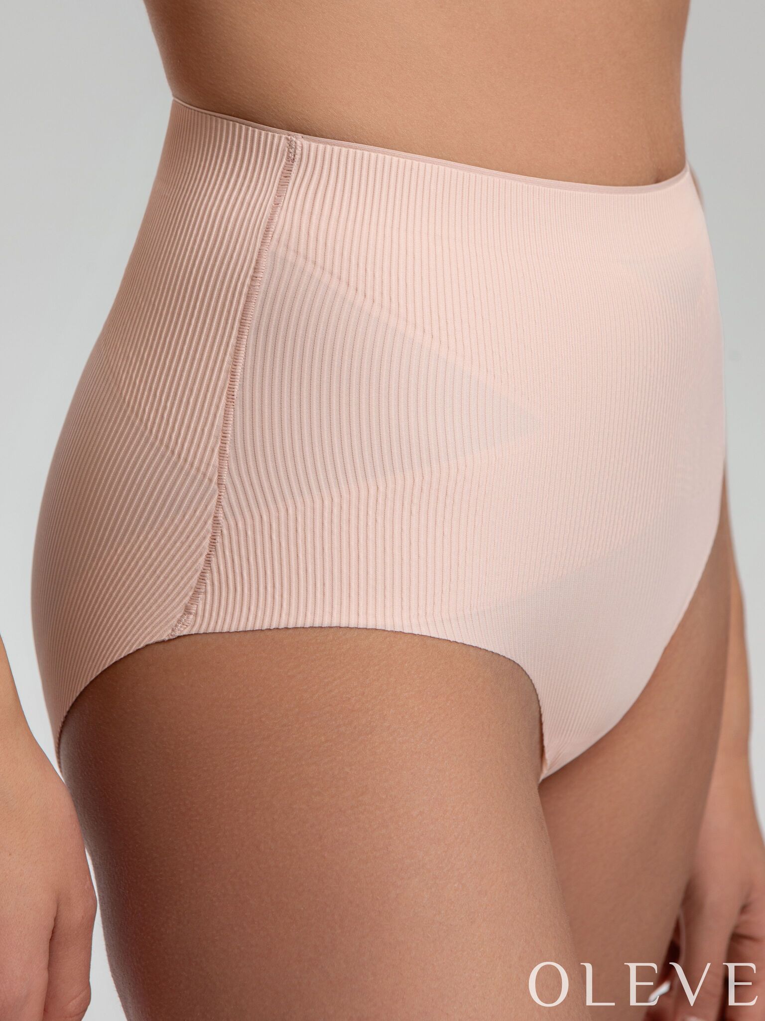 Бесшовные утягивающие трусы слипы с высокой посадкой. Выполнены из микрофибры в рубчик, края обработаны лазером.