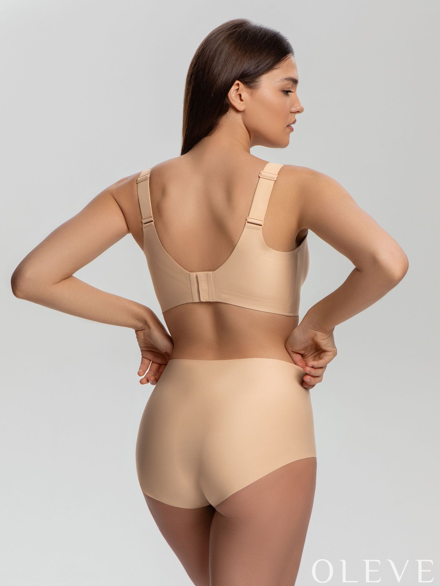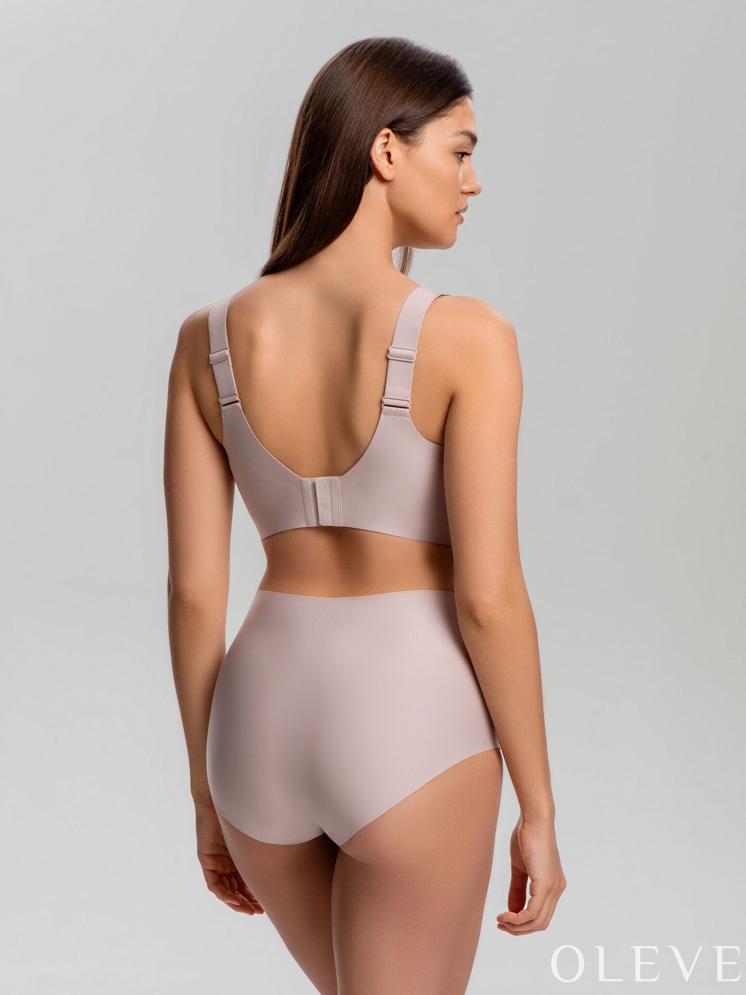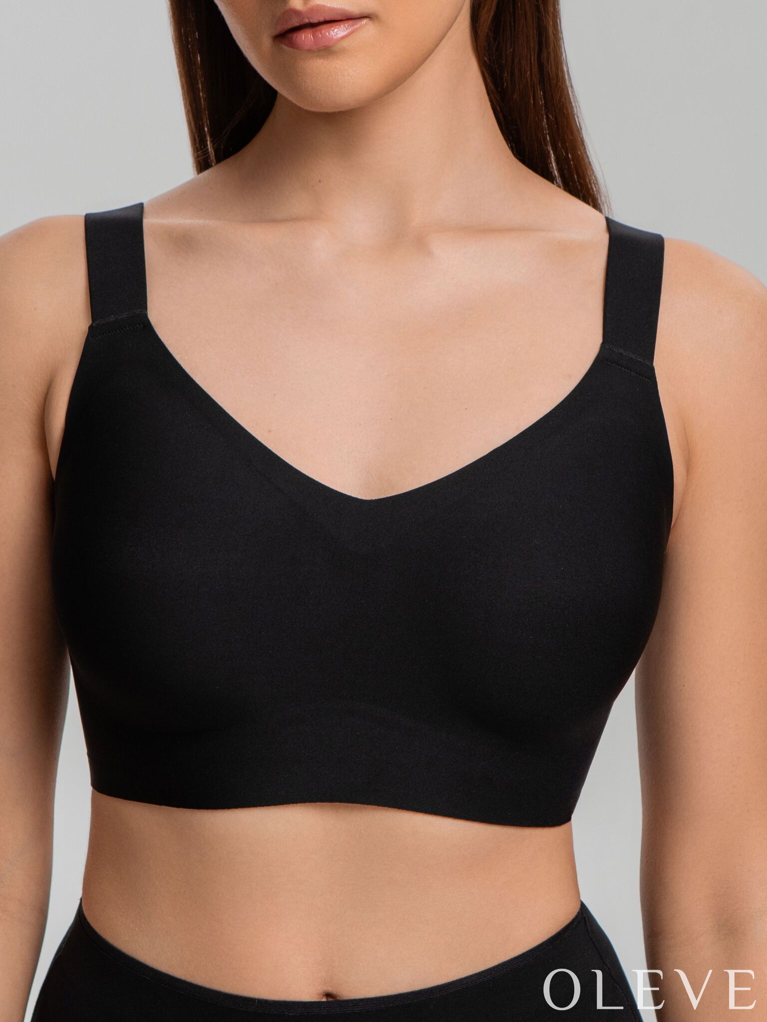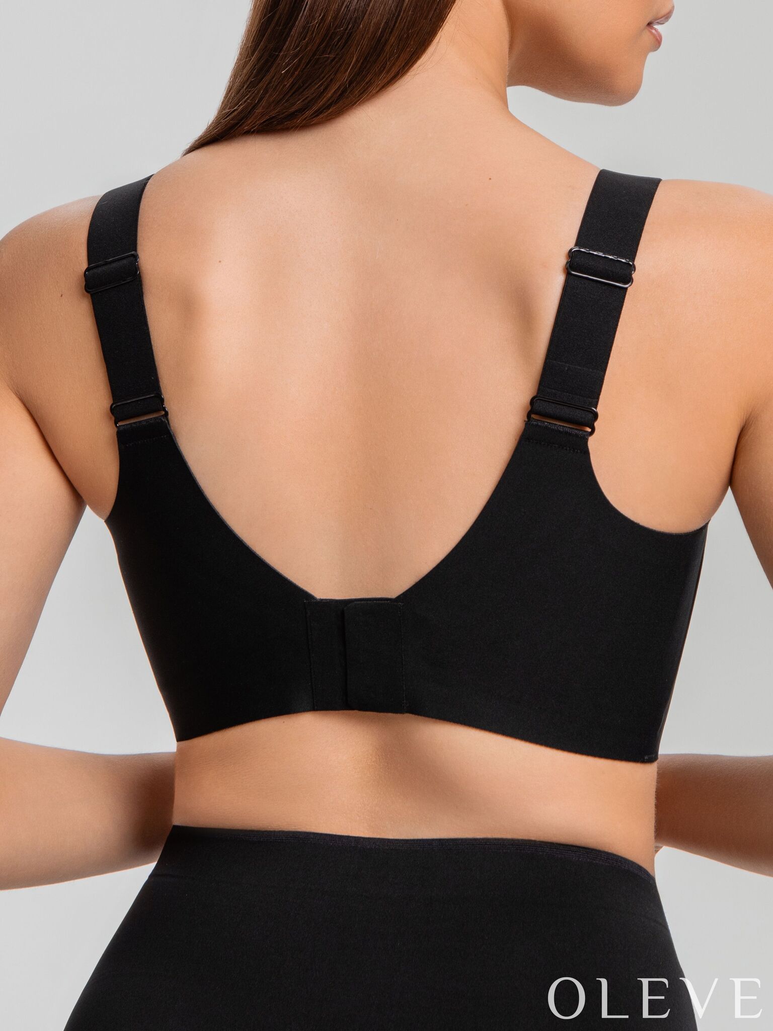 Бесшовный бюстгальтер с V-образным вырезом из микрофибры. Силиконовые вставки создают дополнительную поддержку груди. Для более комфортной и плотной посадки добавлены боковые косточки. В комплекте съёмные латексные вкладыши. Широкая спинка в форме леотард. Комфортные широкие бретели исключают натирание и сдавливание плеч.