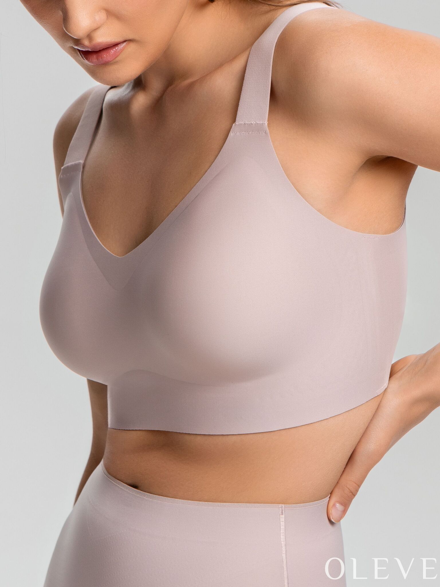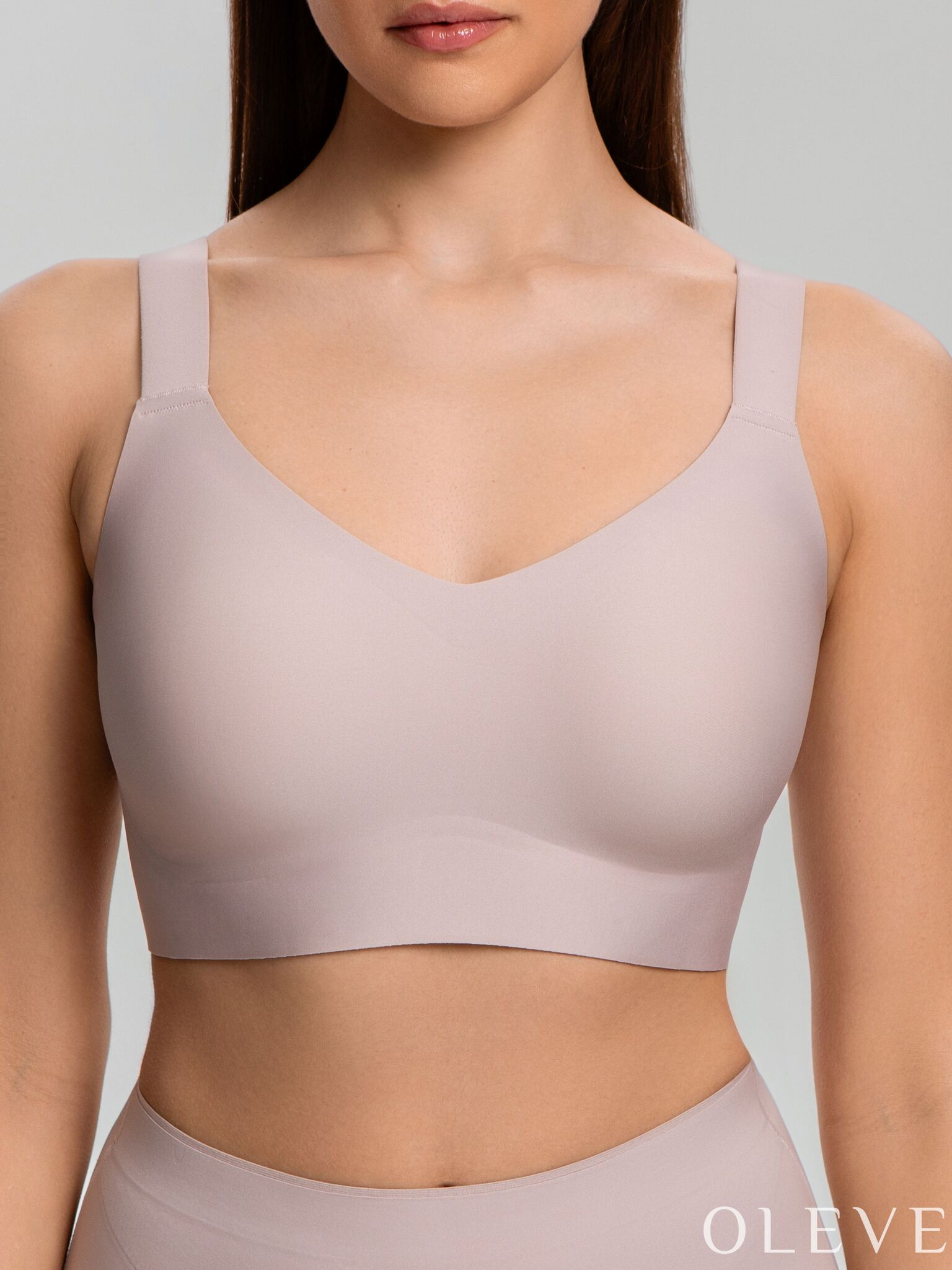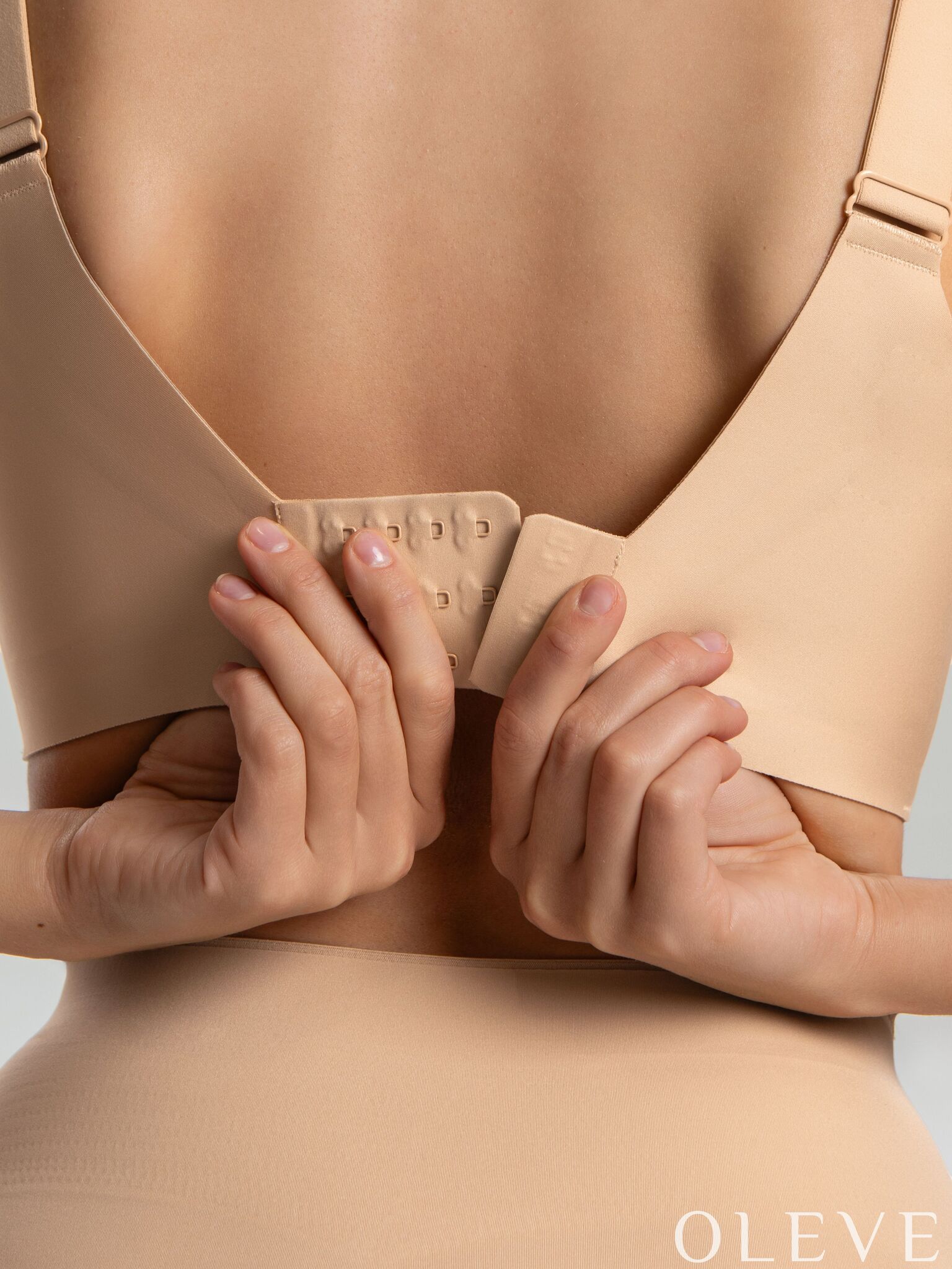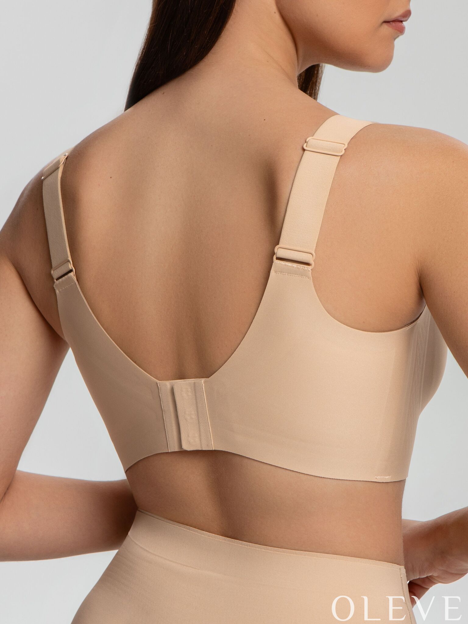 Бесшовный бюстгальтер с V-образным вырезом из микрофибры. Силиконовые вставки создают дополнительную поддержку груди. Для более комфортной и плотной посадки добавлены боковые косточки. В комплекте съёмные латексные вкладыши. Широкая спинка в форме леотард. Комфортные широкие бретели исключают натирание и сдавливание плеч.